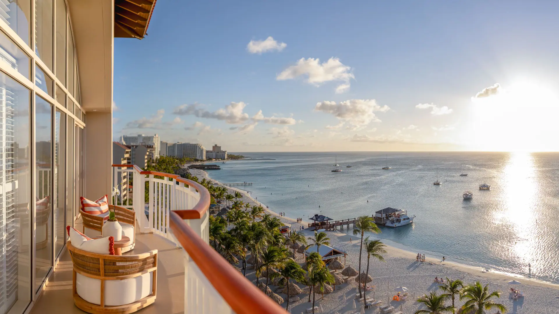 Hyatt Regency Aruba Resort Spa and Casino is a premier oceanfront retreat on Aruba’s Palm Beach, offering luxury, elegance, and Caribbean charm. Surrounded by lush tropical gardens and white-sand shores, this family-friendly resort features spacious rooms with modern amenities, a three-level pool complex with a waterslide, beachfront dining, and a full-service spa. Guests can unwind at the award-winning ZoiA Spa, try their luck at the on-site casino, or enjoy paddleboarding and snorkeling right off the beach. Ideal for both couples and families, the resort combines relaxation and adventure in one of the Caribbean’s most sought-after destinations.